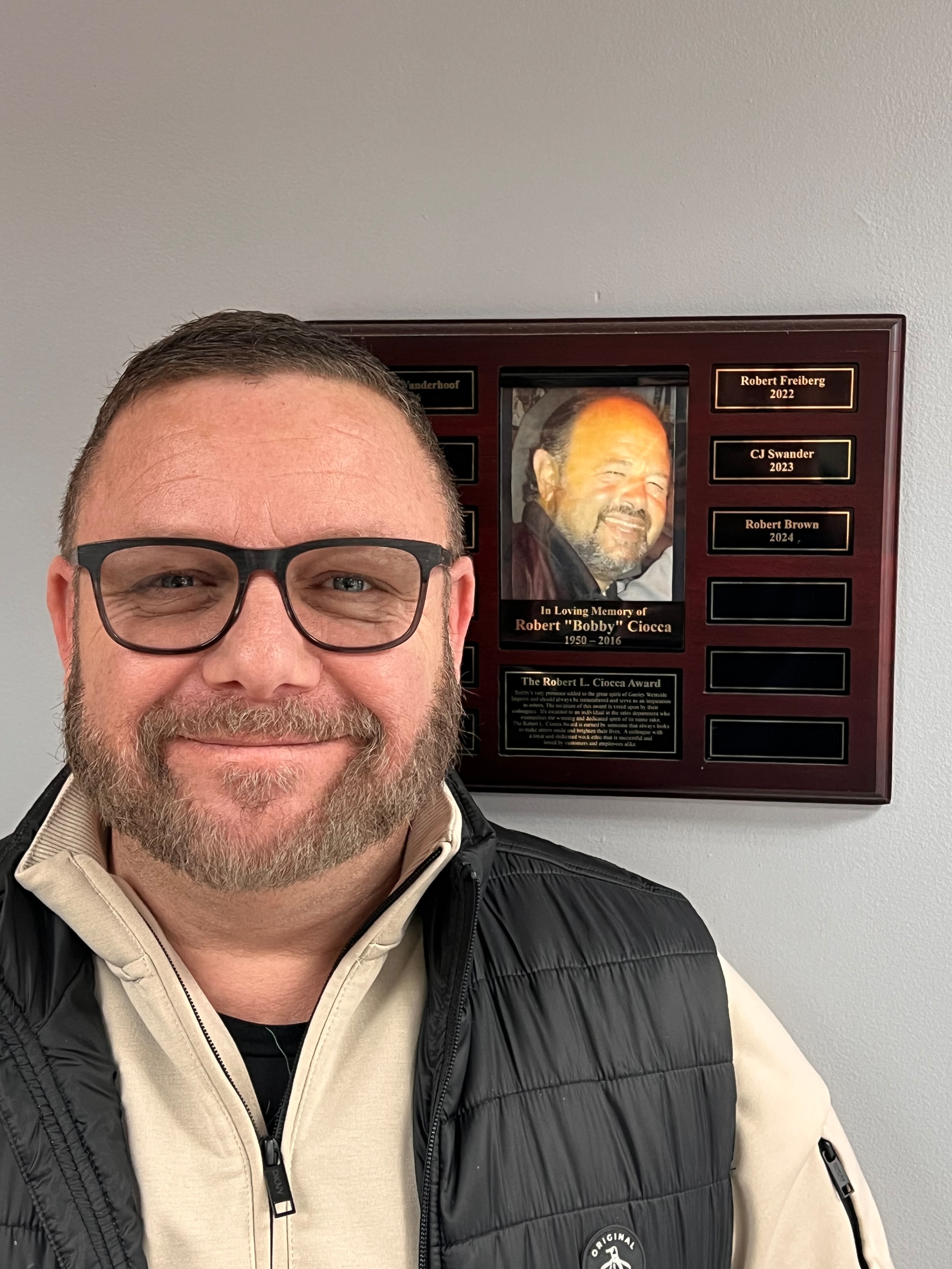 On June 28, 2016, Ken Ganley Westside Imports lost a cherished member of its family with the passing of Bobby Ciocca. Bobby's very presence added to the great spirit of Ken Ganley Westside Imports and should always be remembered and serve as an inspiration to others. The recipient of this award is voted upon by their colleagues. It's awarded to the individual in the sales department who exemplifies the winning and dedicated spirit of its name sake. The Robert L. Ciocca Award is earned by someone that always looks to make others smile and brighten their lives. A colleague with a loyal and dedicated work ethic that is successful and loved by customers and employees alike.